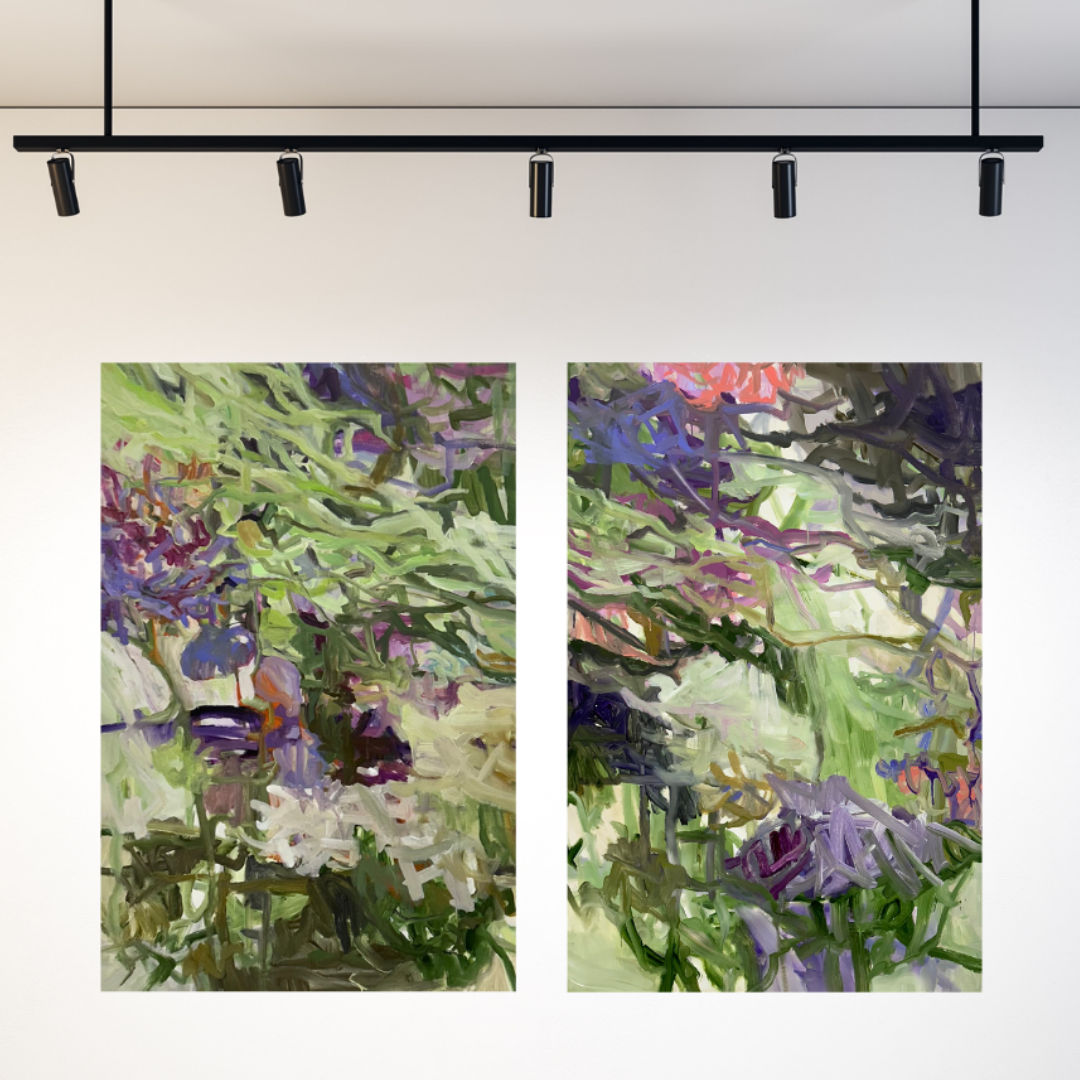 Whispers of Tomorrow is a paired work created in direct conversation with the landscape of Ireland’s Wild Atlantic Coast—a place where growth unfolds quietly, persistently, and often unseen. Painted during residency, these two canvases reflect an intimate study of native flora, shifting light, and the subtle choreography of ecosystems shaped by wind and weather.